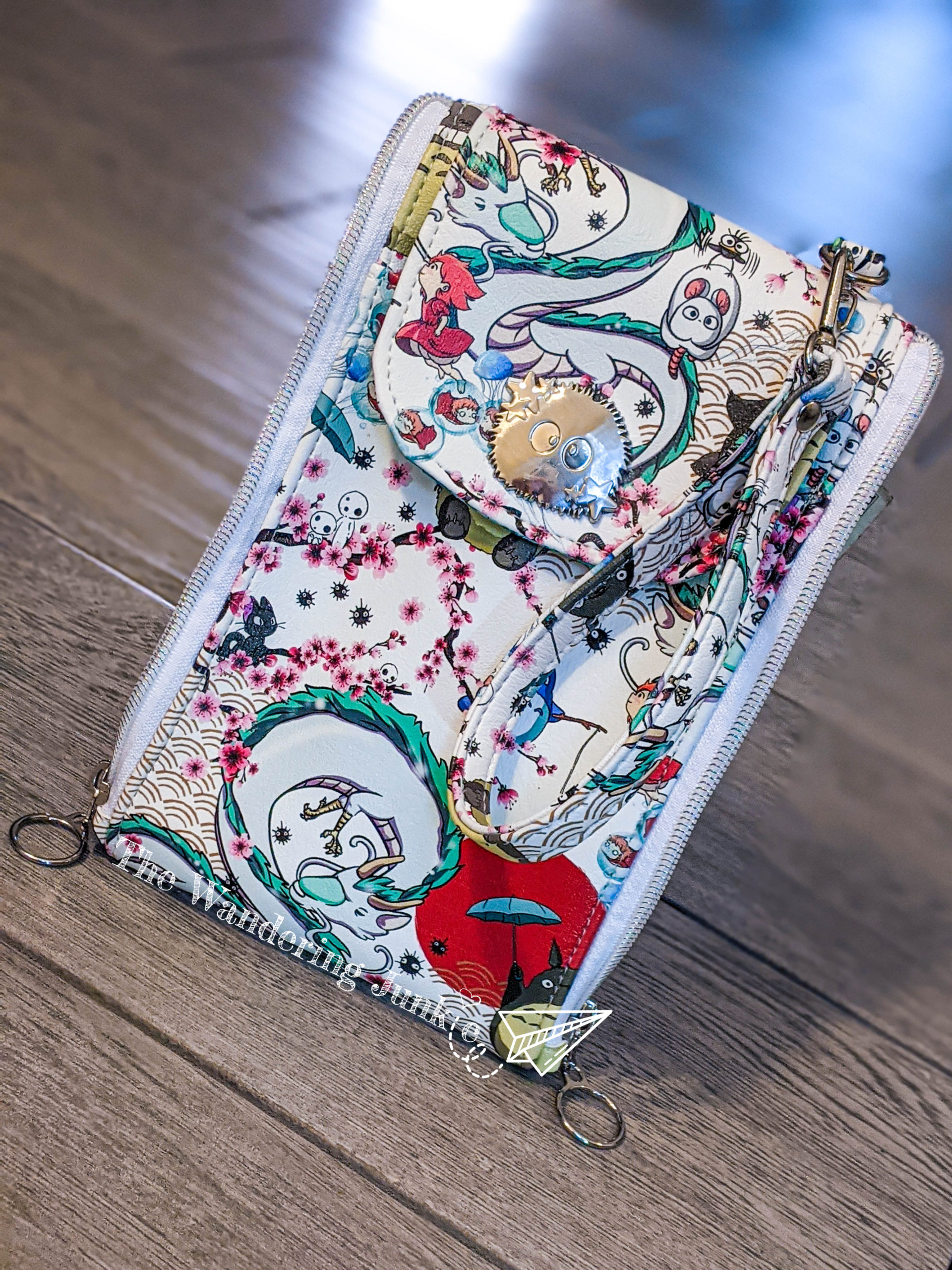 The Catskill Wristlet is made with custom printed faux leather and custom hardware and features two spacious outer zip pockets and an outer slip pocket. One zip pocket acts as a wallet and houses four card slots, a slip pocket for cash, and a smaller zip pocket for change, while the other zip pocket is free to hold your keys and other items. The font flap hides a slip pocket that is large enough to fit your smartphone. This wrislet can be customized to be a crossbody sling as well.